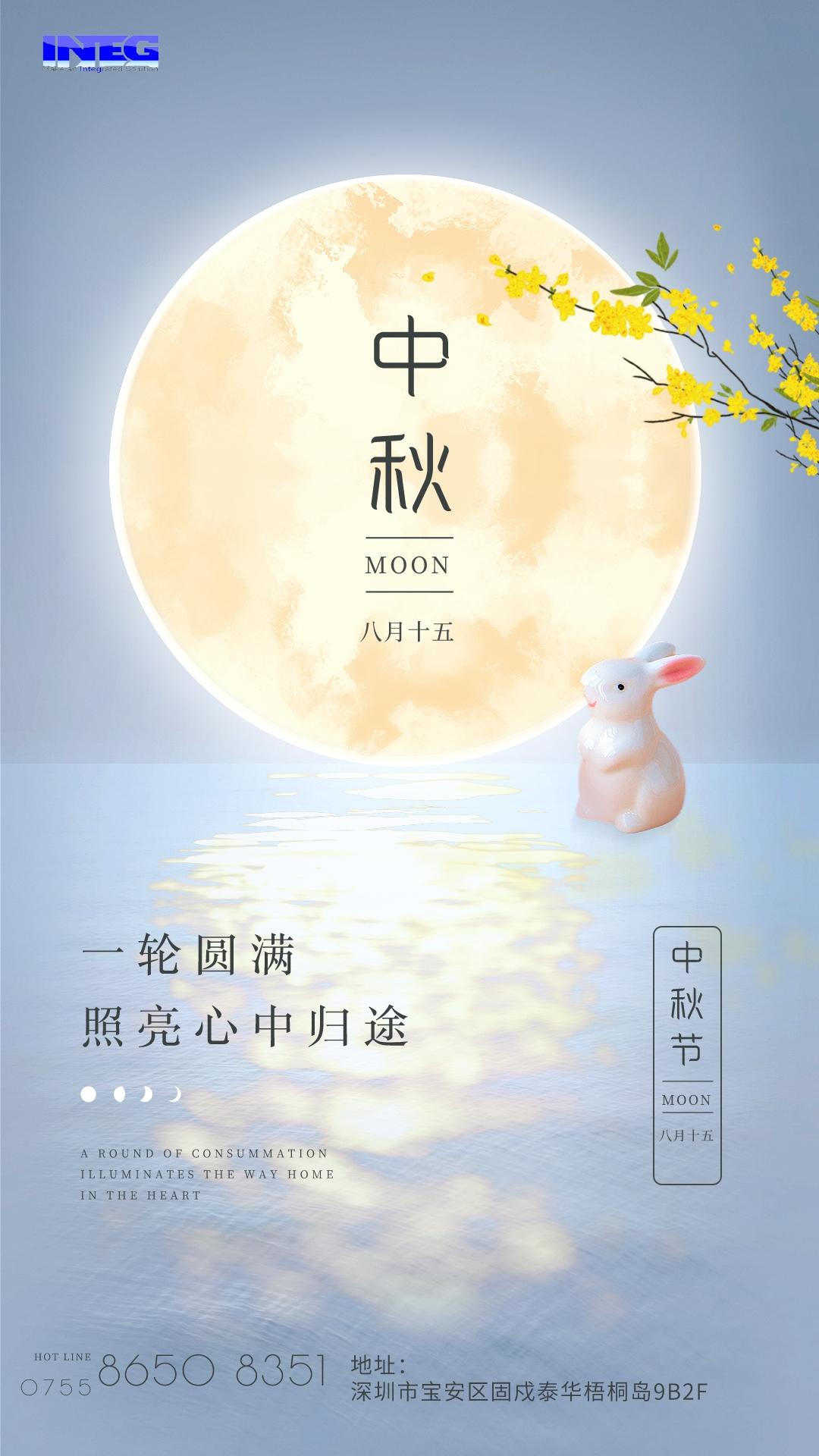 On to the Mid-Autumn Festival extra circle, people to the Mid-Autumn Festival feeling is stronger, wish to get the common autumn month, INTEG  wish you a happy Mid-Autumn Festival!