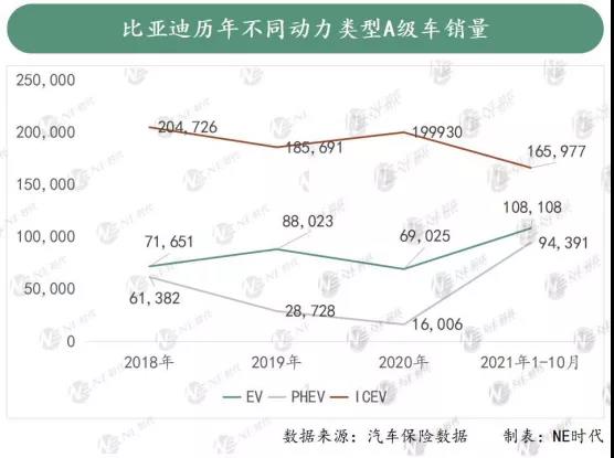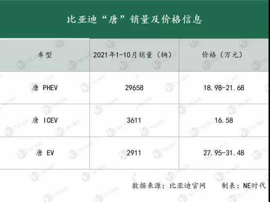 而這將近10萬的A級(jí)PHEV車型中,有89326臺(tái)是比亞迪DMI車型,其中秦Plus 55070輛,宋Plus 34256輛。 以秦Plus為例,作為一款標(biāo)準(zhǔn)的A級(jí)車,除了可以汽油驅(qū)動(dòng),還提供55km和120km的純電續(xù)航,但是補(bǔ)貼后的售價(jià)只有10.58-14.58萬元,這種車放在目前的燃油車市場(chǎng)跟很多車型相比也非常有優(yōu)勢(shì),更何況還是一款PHEV車型。10個(gè)月創(chuàng)造5.5萬銷量非常合理。 還有一款比較典型的就是宋Plus,插混版前十個(gè)月銷量比燃油版還多出將近900臺(tái)。前者價(jià)格區(qū)間在14.68-19.98萬元,后者11.58-14.38萬元之間,就汽車保險(xiǎn)數(shù)據(jù)來看,插混版本主要起量的是14-16萬之間的這兩款,這跟燃油版的高配版差價(jià)非常小,所以在價(jià)格上還是非常有優(yōu)勢(shì)的。 不僅是A級(jí)車,在比亞迪體系里面,B級(jí)車唐PHEV低配版與燃油版車型價(jià)差也拉得很近,并且以高性價(jià)比完勝EV版銷量。