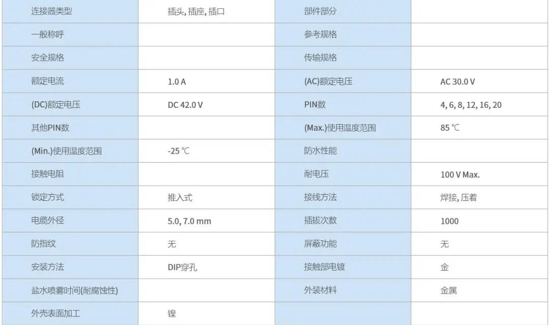 特點 1 超小級高密度圓形連接器 2 具有良好操作性的推拉鎖 3 EMI對策設計 4 支持Cat.5e(1Gbps)高速以太網※ 5 豐富的選型 ※傳輸性能可根據線纜?引腳尺寸?結線方法而改變, 線束后確認實力。 超小級