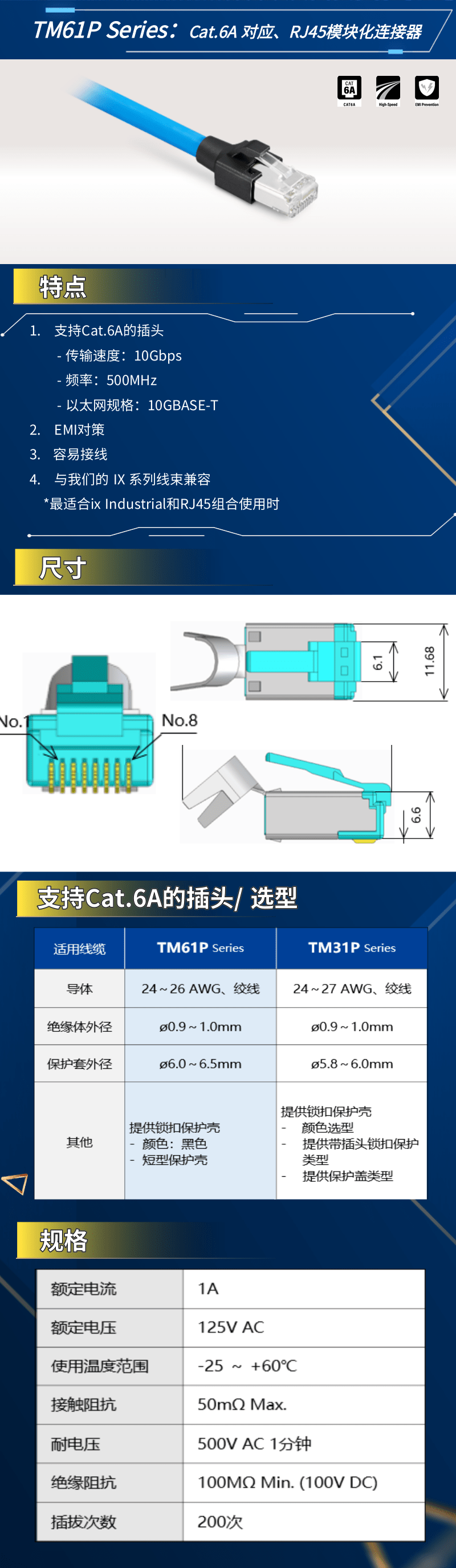 【新品發布】Cat.6A 對應、RJ45模塊化連接器TM61P